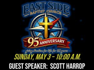We are excited for our 95th anniversary weekend! We will kick things off with a concert by Blake and Jenna Bolerjack on Saturday, May 2 at 5:00 p.m. Sunday, May 3, Blake and Jenna will be with us, and we are excited to welcome back Scott Harrop as our special guest speaker for the morning!
